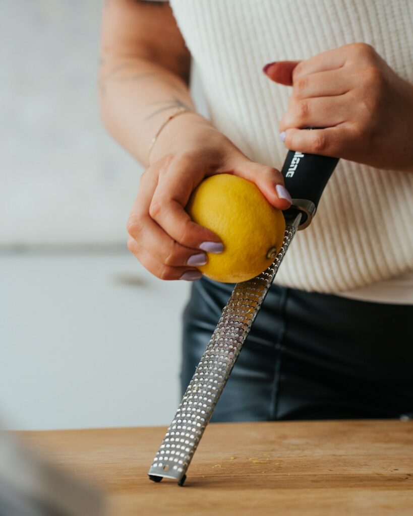 Mikroteräraastin on keittiön luottokalustoa ja tulee tarpeeseen useissa resepteissä. Hyvä raastin helpottaa ja nopeuttaa työskentelyä ja samalla välineellä raastaa niin sitruksen kuoret, kovat juustot, valkosipulit, inkiväärit kuin kuivamausteet. Esimerkiksi hienoteräinen Microplane on klassikkoraastin, joka kannattaa hankkia ellei sitä vielä löydy!