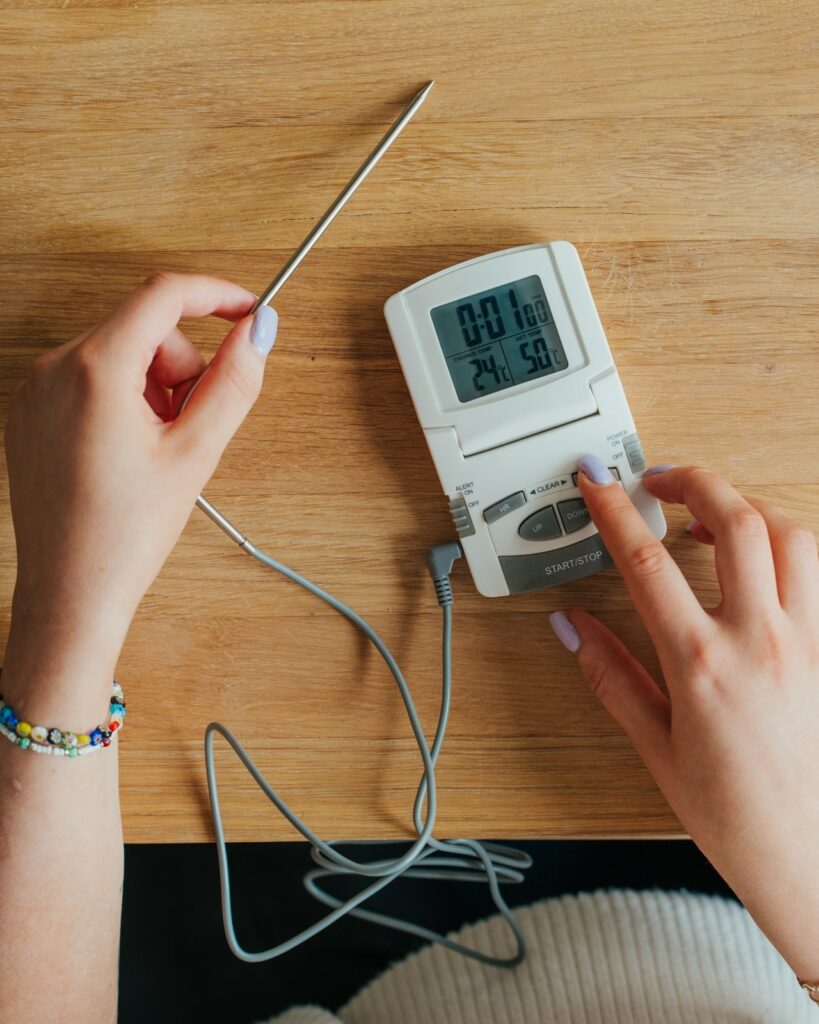 Digitaalisen lämpömittarin kanssa ei tarvitse arvuutella ja tunnustella lihojen ja kalojen kypsyysasteita, vaan saat aina kypsennettyä ne juuri oikeaan sisälämpötilaan. Hyvä digitaalinen lämpömittari toimii myös esim. frittiöljyn lämmön mittaamiseen tai veden lämpötilan mittaamiseen leivonnassa. Suomen lämpömittarin paistomittari on varma valinta ja sisältää myös ajastimen!