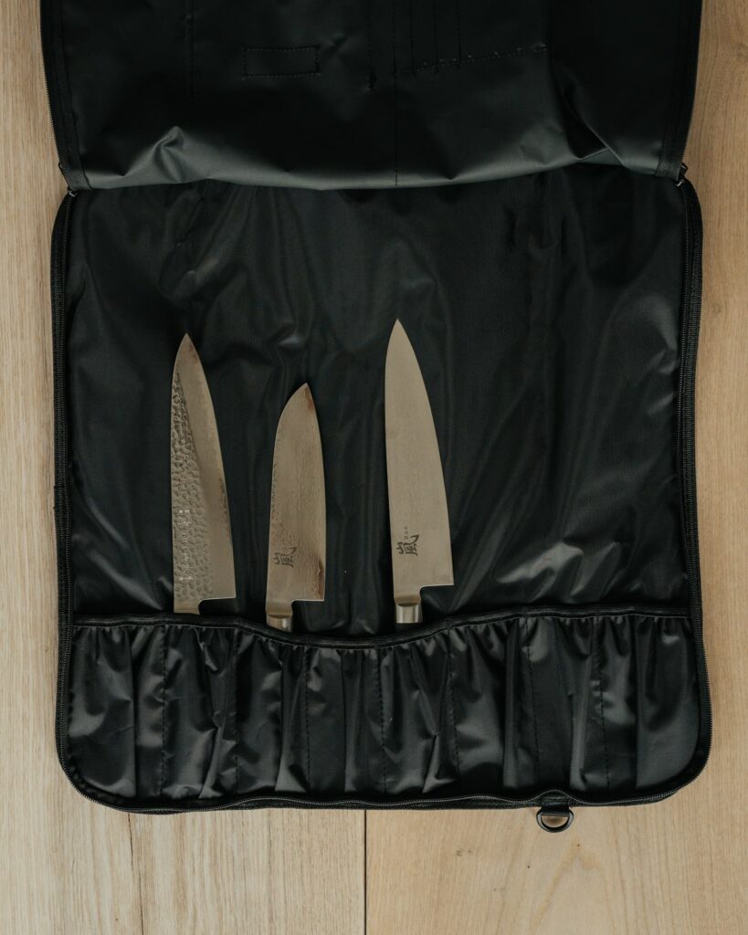 Ammattikokki on tottunut roudaamaan veitsilaukkunsa työpaikalta toiselle, mutta kotikokille tulee harvemmin mieleen ottaa tarvikkeita mukaan reissuun. Mökillä tai kaverin luona ruokaa laittaessa tuskaillaan sitten huonoja veitsiä. Hankkimalla veitsilaukun, saa kuljetettua veitset ja oman keittiön tärkeimmät työvälineet aina mukana ja ruuanlaitto käy kodin ulkopuolellakin totuttuun tapaan. Veitsilaukusta kannattaa löytyä paikat vähintään neljälle veitselle ja taskuja myös atuloille ja muille työvälineille. Kuvassa näkyvä Yaxellin veitsilaukku 8:lle on ainakin huippuvalinta!