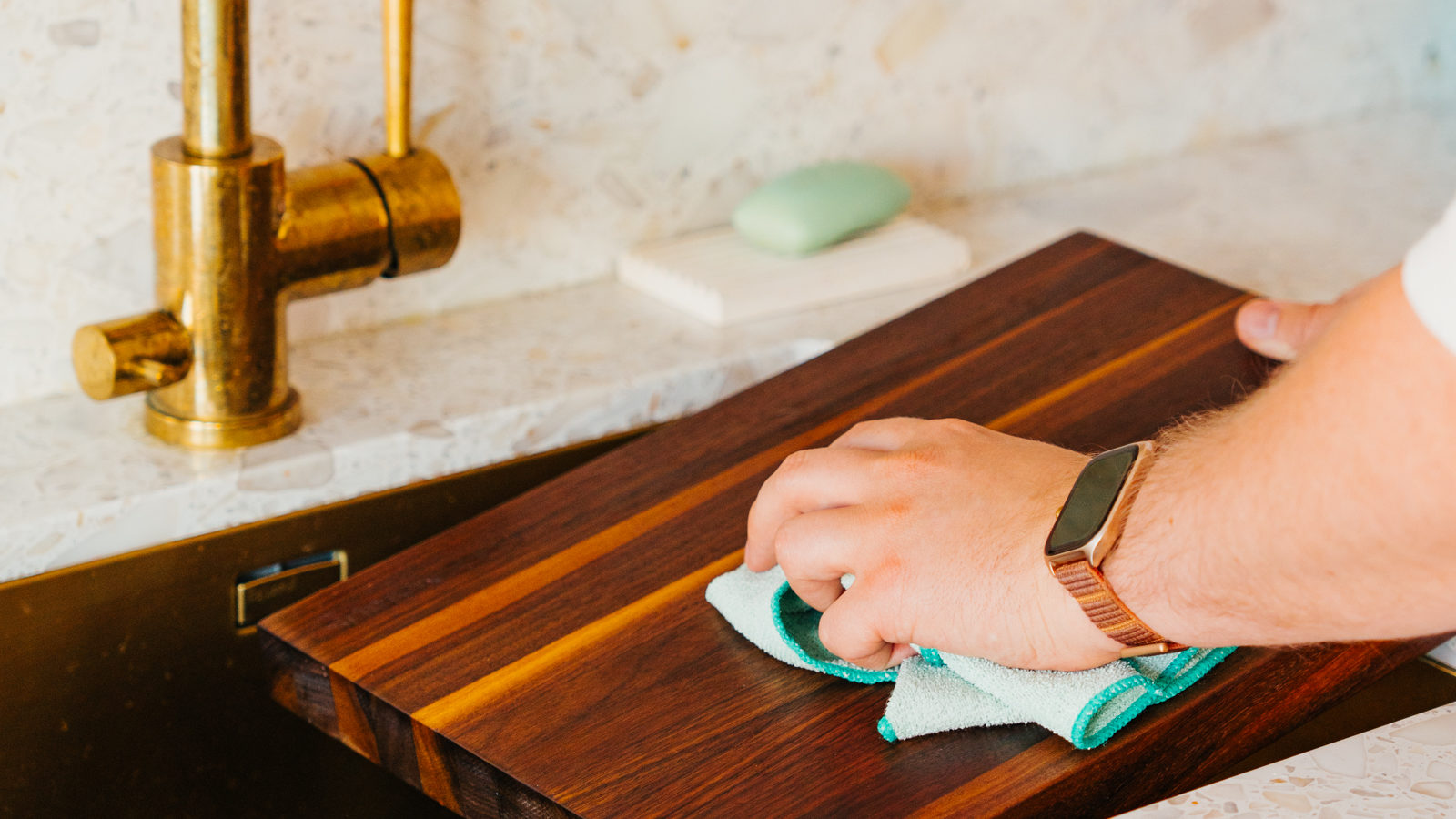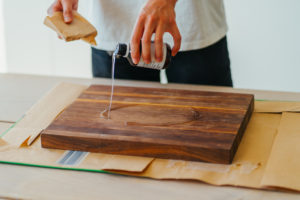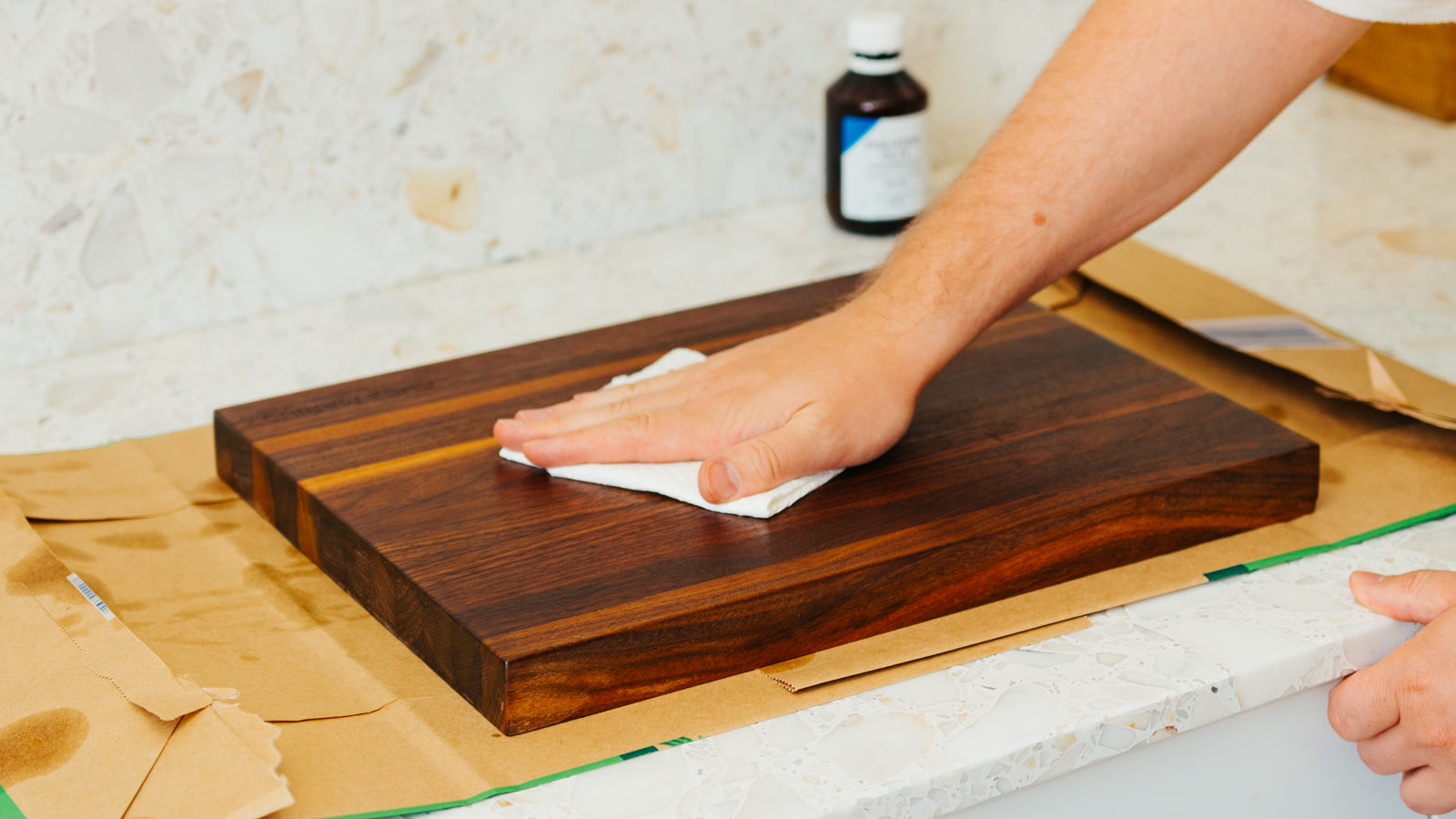 Levitä öljyä reilusti leikkuulaudan kaikille puolille, Voit käyttää talouspaperia tai nukkaamatonta liinaa.