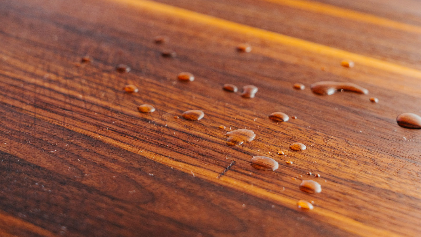 Öljyämisen tarvetta voi myös testata ripottelemalla laudalle muutaman pisaran vettä. Jos pisarat jäävät laudan pinnalle pyöreinä helminä kaikki on ok. Jos pisarat leviävät pitkin lautaa ja varsinkin jos ne imeytyvät laudan sisään, on aika öljytä lauta uudestaan.