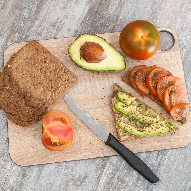Edullinen pieni sahalaitainen veitsi vaikkapa aamupalapöytään. Sahalaitaisella terällä leikkaa helposti nätit viipaleet voileipäkurkuista ja -tomaateista.