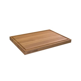 Leikkuulaudan reunassa on Chez Marius logo.